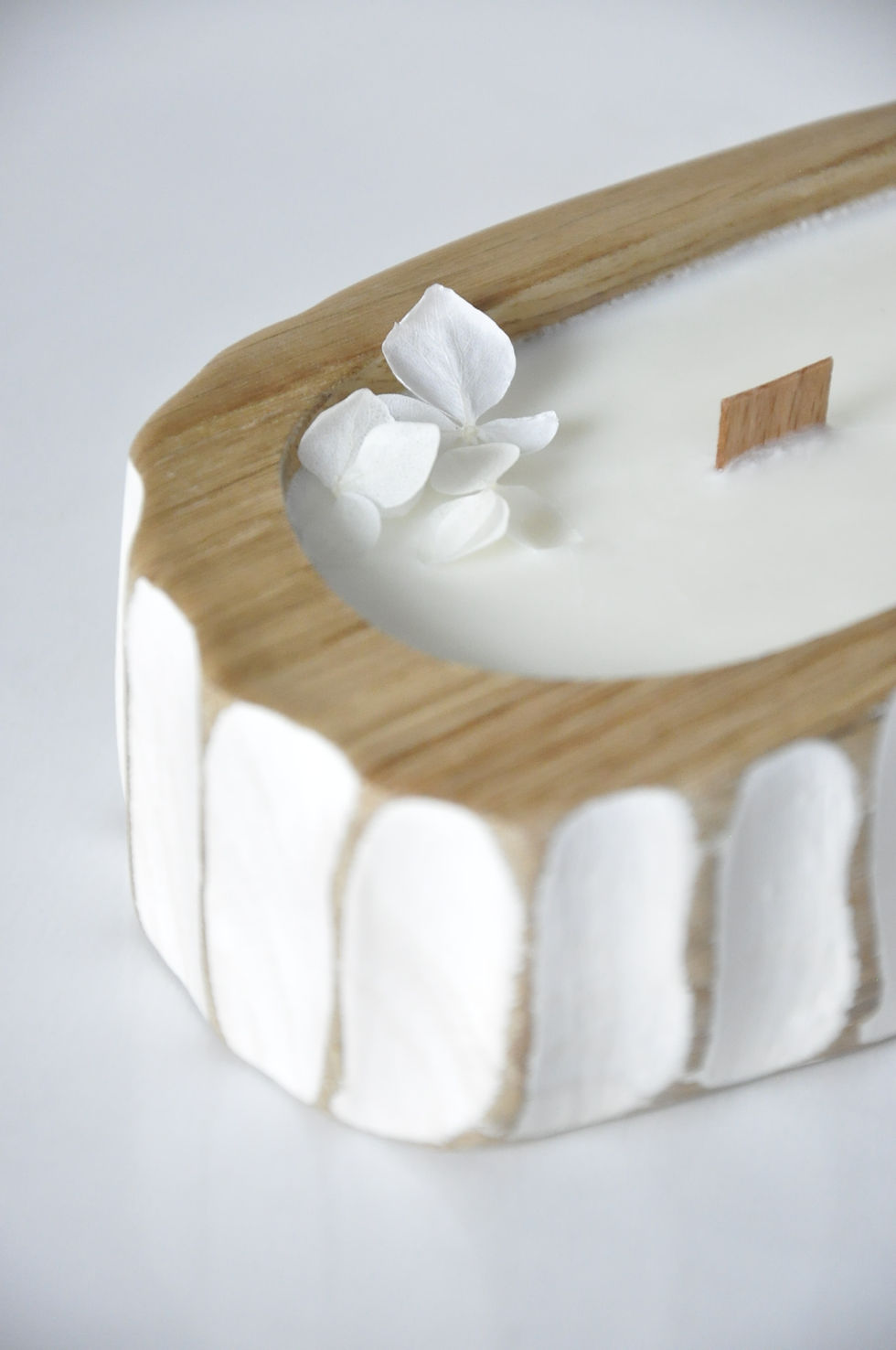 Świeca sojowa zapachowa - w drewnie dębu /matcha&bergamotka/ - rzeźbiona